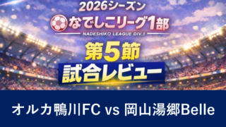 2026プレナスなでしこリーグ1部 第5節、オルカ鴨川FC対岡山湯郷Belleの試合レビュー。齊藤桃花のリーグ初ゴールでオルカが先制するも、後半アディショナルタイムに追いつかれて1-1。主導権を握りながら勝ち切れなかった一戦を振り返ります。