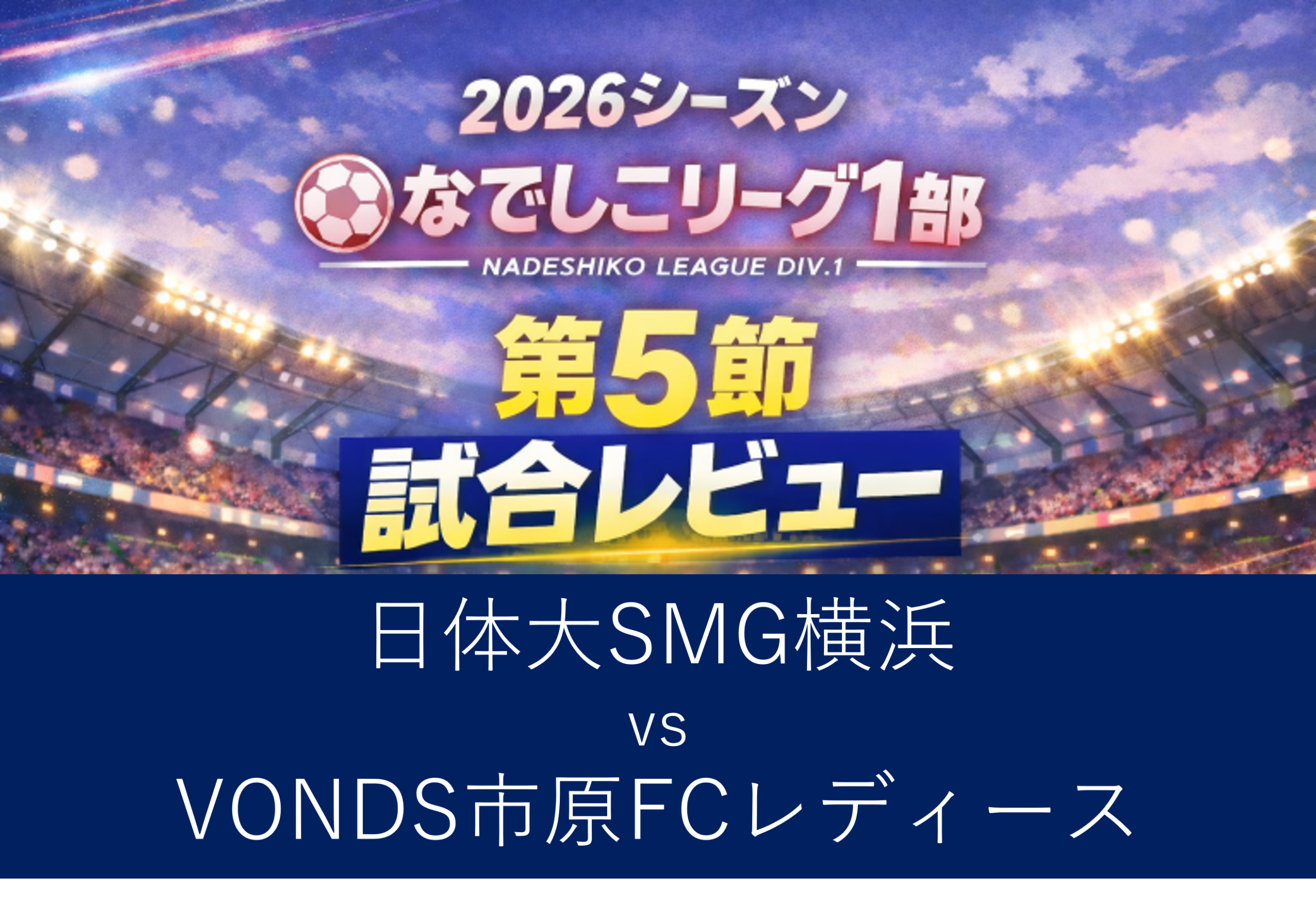 前節4失点で敗れた日体大SMG横浜と、なでしこリーグ1部初挑戦でここまで勝利がないVONDS市原FCレディースが対戦した、2026プレナスなでしこリーグ1部第5節。試合は、市原が前線からの積極的なプレスで日体大のビルドアップを苦しめ、一度は同点に追いつく粘りを見せた。しかし終盤、日体大が安部美琴の勝ち越し弾を皮切りに一気に突き放し、4-1で勝点3を手にした。両チームの狙いと課題が色濃く表れた一戦を振り返ります。