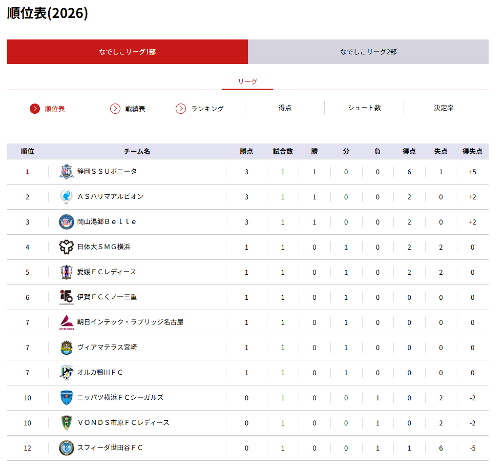 リーグ屈指の攻撃力を持つ静岡SSUボニータの得点数がエグいことになっている。