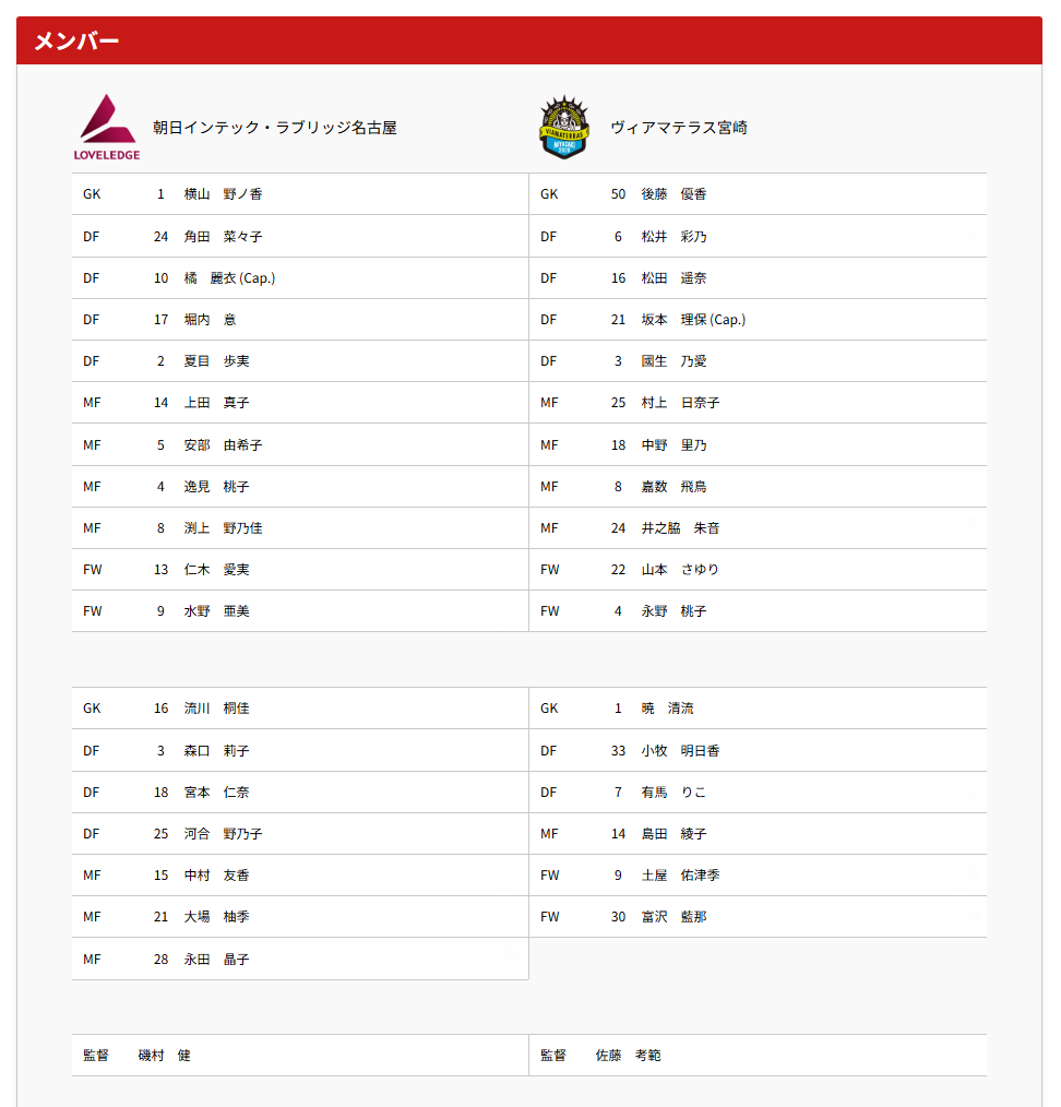 | 結果 | 朝日インテック・ラブリッジ名古屋 0-0 ヴィアマテラス宮崎 |