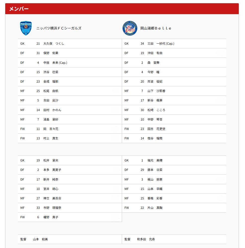 結果ニッパツ横浜FCシーガルズ 0-2 岡山湯郷Belle